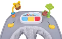 De Walk ’n Push heeft een vrolijk speelpaneel wat voor uren speelplezier en vermaak zal zorgen. Het speelpaneel heeft leuke melodietjes en werkt op 2x AA batterijen (niet inbegrepen). De wieltjes aan de voorkant zijn zwenkbaar, waardoor de loopstoel zeer wendbaarheid is.