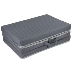 Het matrasje heeft een standaard maat van 120 x 60 cm en past hiermee in de meeste reis- en campingbedjes. Je neemt het matras net als een campingbed eenvoudig mee, hij is namelijk in drie delen opvouwbaar en te dragen met het handvat. Hij wordt tevens geleverd inclusief draagtas met schouderband om hem goed op te bergen en mee te nemen.Â