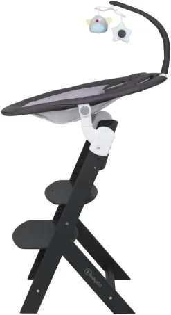 Daarnaast wordt de swing geleverd met een BabyGo Family kinderstoel. De swing is makkelijk op de kinderstoel te bevestigen met de adapters waardoor je je kleine hoger kan zetten om er zo beter bij te kunnen. Van deze kinderstoel is zowel de zitting als de voetensteun in 3 verschillende hoogtes te verstellen zodat er altijd een comfortabele positie voor je kindje te vinden is.