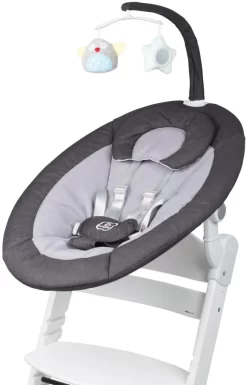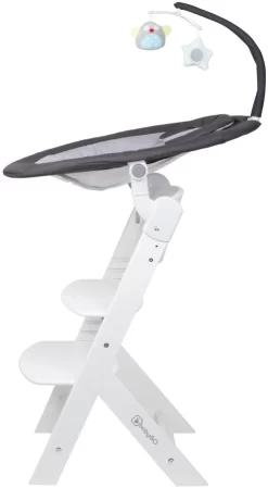Daarnaast wordt de swing geleverd met een BabyGo Family kinderstoel. De swing is makkelijk op de kinderstoel te bevestigen met de adapters waardoor je je kleine hoger kan zetten om er zo beter bij te kunnen. Van deze kinderstoel is zowel de zitting als de voetensteun in 3 verschillende hoogtes te verstellen zodat er altijd een comfortabele positie voor je kindje te vinden is.