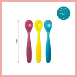Daarnaast horen er drie flexibele lepels bij deze set, waarmee je je kindje gemakkelijk eten kan geven. Ook kan je kindje zelfstandig leren eten!Â