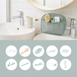 Deze mooie set van Babymoov bevat een digitale thermometer met flexibele tip, een neuspompje, een schaartje, nagelknipper, nagelvijl, badthermometer, zachte houten borstel, bijtring, vingertandenborstel en drie herbruikbare, katoenen doekjes.
