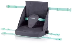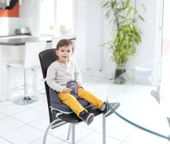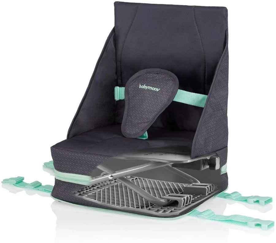 De Babymoov Up & Go booster past op alle stoelen, en is daarnaast gemakkelijk aan te passen aan de tafelhoogte. Verder is hij voorzien van een 3-punts veiligheidsgordel.Â