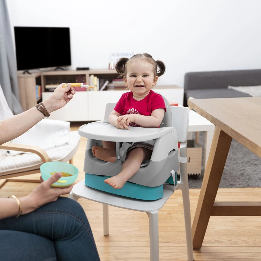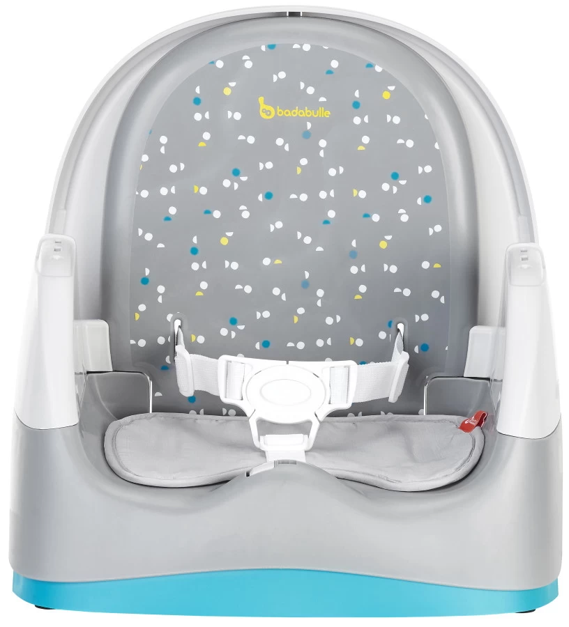 De Home & Go Booster van Badabulle is een praktisch stoeltje wat je zowel op de grond kan gebruiken als op een grote stoel als stoelverhoger! Je kunt de boosterseat op een stoel zetten en stevig aan de stoel bevestigen met de veiligheidsbanden aan de onder- en achterkant.Â