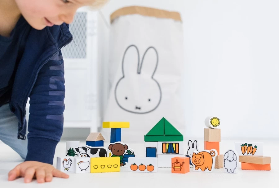 Je kindje zal urenlang zoet zijn met deze leuke houten blokken van Nijntje! Deze blokken hebben het thema boerderij, wat betekent dat je kleintje kan spelen met Nijntje, Boris, een schaap, een varken, een koe en kippetjes. Zorgt jouw kindje ervoor dat de groentjes genoeg drinken krijgen?Â