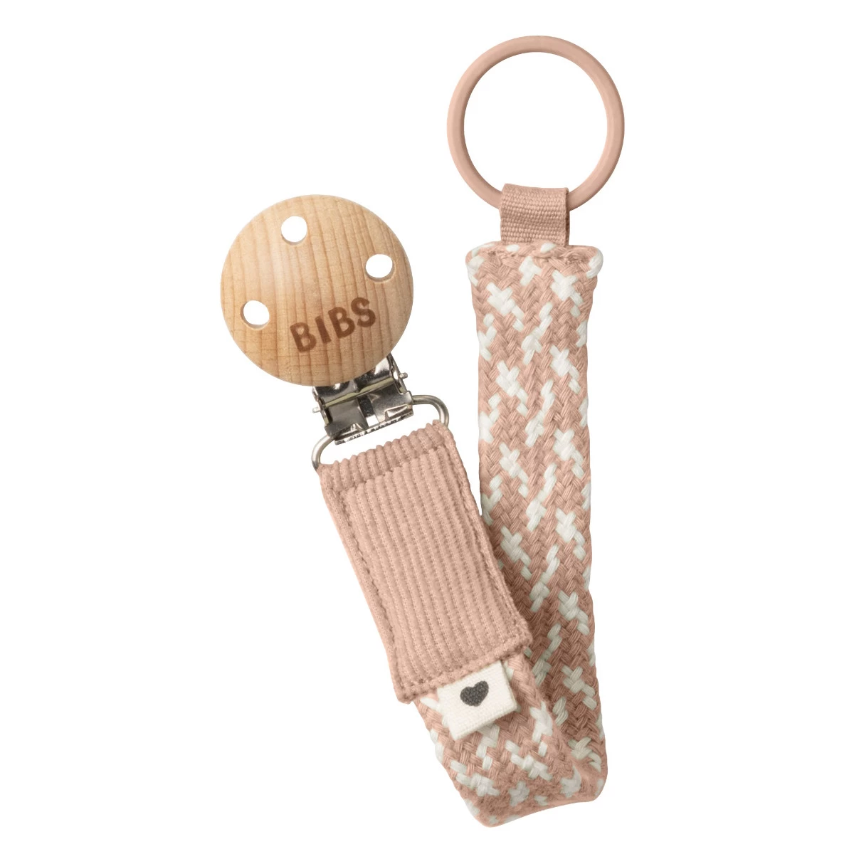 Dit fopspeenkoord heeft aan het ene uiteinde een ring zitten waaraan je de fopspeen vast kan maken (fopspeen niet meegeleverd). Aan het andere uiteinde zit een houten clipje waarmee je het koord aan de kleding van je kleine kan bevestigen.Â