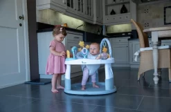 Het 360° draaibare activiteitenstation, geschikt vanaf een leeftijd van 6 maanden tot 11 kg, is voorzien van een comfortabel zitje met een gewatteerde rugleuning en kan op 3 hoogtes worden versteld. Naast dat de tafel licht en geluid bevat heeft het ook verschillende speelgoedjes, zoals bijvoorbeeld een spiegel, roterende bal met kralen, bijtring, een boog met hangend figuurtje en een plekje om een drinkfles neer te zetten.