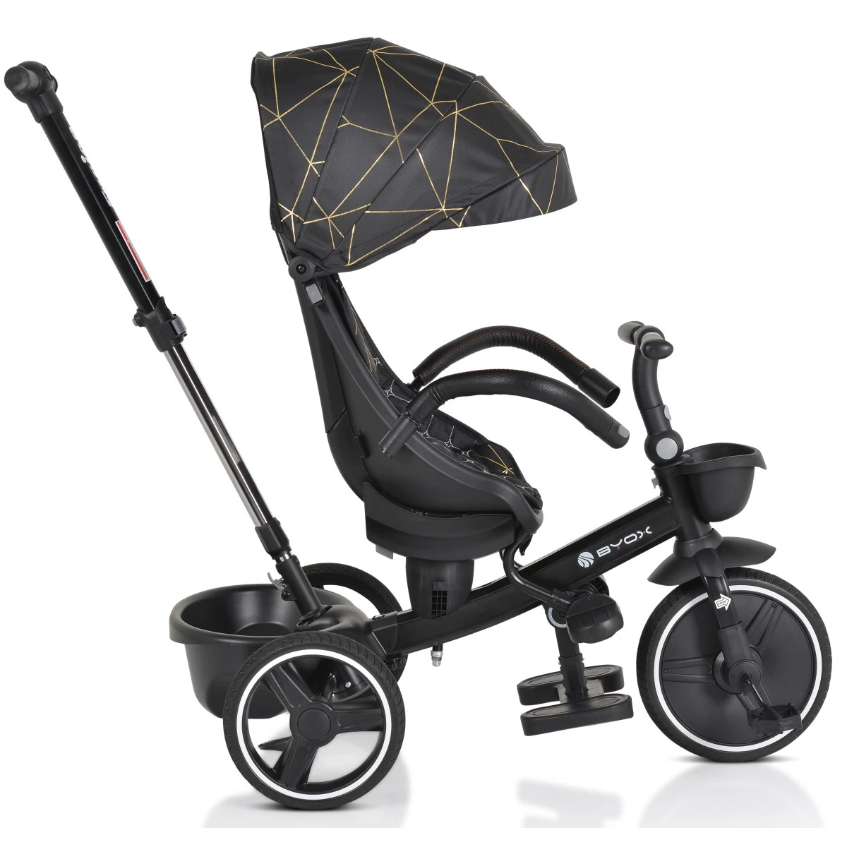 Het zitje van de Fusion is 360º draaibaar. Je kindje kan dus rechtop zitten om rond te kijken, lekker ontspannen liggen, of omgedraaid zitten om lekker naar papa of mama te kunnen kijken! Voor de kleintjes heeft de driewieler van Cangaroo een beschermbeugel aan de voorkant en een inklapbaar voetensteuntje.Â