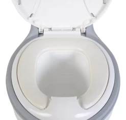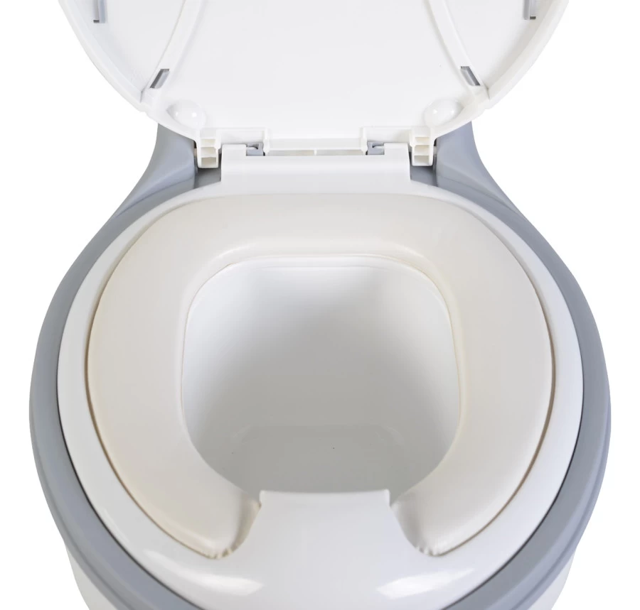Het potje is voorzien van een opbergvak voor handdoeken. Verder heeft het potje een rubberen anti-slipvoet, zodat deze goed op de grond bevestigd blijft staan. Het potje is vanaf de grond 23 cm hoog.
