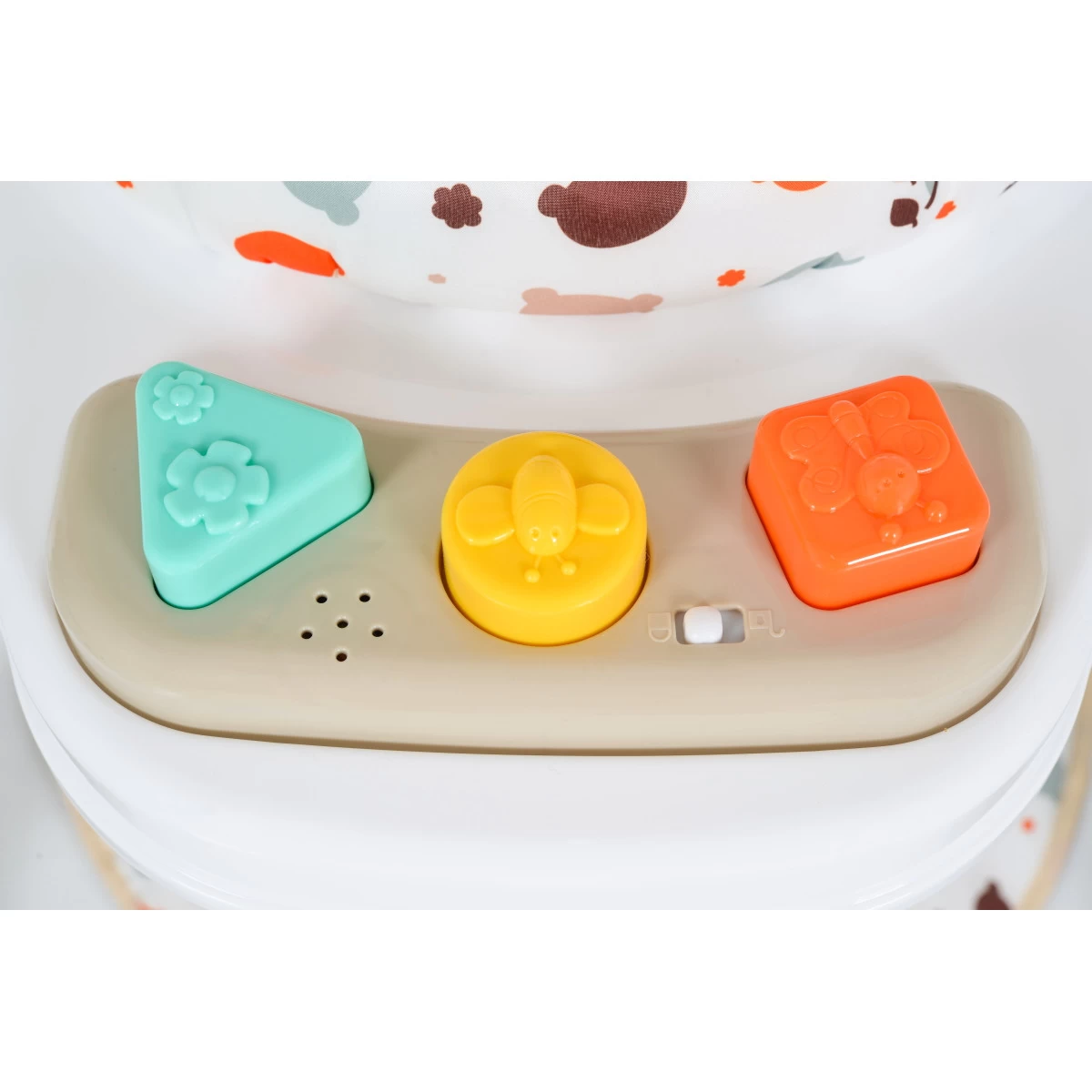 Tijdens het spelen is er veel te ontdekken voor je kindje. Het muziekblad dat met knopjes te activeren is, zal voor eindeloos speelplezier zorgen. Het stoeltje van de jumper is 360° draaibaar, hierdoor heeft je kindje toegang tot al het speelgoed op de jumper.