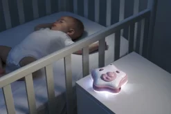 De speelboog heeft een nachtlampje die zacht wit licht geeft, dit helpt je kindje bij het in slaap vallen. Daarnaast bevat hij een aantal klassieke melodieën van bijvoorbeeld Bach en Beethoven waardoor je kindje heerlijk kan ontspannen. Zowel het licht als het geluid is met een timer in te stellen op 15 of 30 minuten. De laatste 5 minuten van de ingestelde tijd wordt het geluid gedempt en het licht langzaam gedimd, zodat je kindje rustig kan wennen. Ook is het volume in te stellen met een volumeknop.