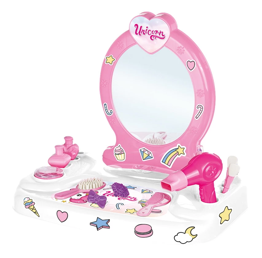 Hij wordt geleverd met 12 accessoires, die ervoor zorgen dat je kindje zich een ware prinses voelt. Zo horen er verschillende haaraccessoires, make-up, een föhn en wat parfumflesjes bij de set. In de opstaande spiegel kan je kindje zichzelf goed zien. De set is bedoeld om op tafel te zetten en is geschikt voor kindjes vanaf 3 jaar.Â