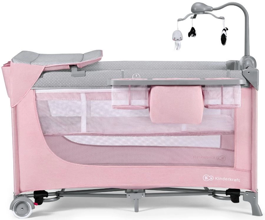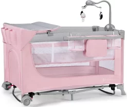 Dit campingbed is uitgerust met een hoop extra accessoires! Zo wordt het bedje geleverd inclusief extra poten voor een schommelfunctie, een speelmobiel, een aankleedvlak en een handig rekje om alle verzorgingsspulletjes van je kleine in op te bergen. Extra handig én een complete set dus!