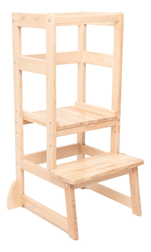 Je kleintje klimt makkelijk op het krukje en staat veilig op tussen de leuningen. Het tweede treetje van het krukje is te verstellen in 3 verschillende hoogtes. Door de leuningen en het anti-slip oppervlak staat je kleintje veel veiliger dan op een ‘normaal’ krukje of opstapje. Daarnaast zijn de pootjes voorzien van extra versteviging waardoor de toren erg stabiel staat. Vanuit hier kan hij of zij nieuwe activiteiten ontdekken en praktische vaardigheden opdoen. Dit ontdekken en het zelfstandig ontwikkelen van deze vaardigheden geeft je kleine een boost in zelfvertrouwen. Geschikt voor kindjes vanaf 18 maanden.