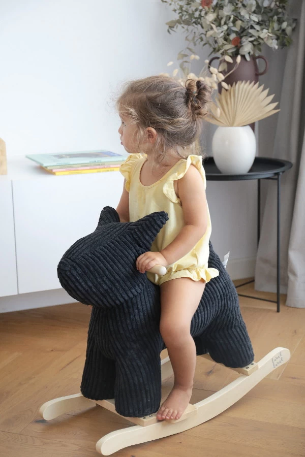 Je kindje kan lekker hobbelen op de rug van dit hobbeldier in de vorm van een hond van Label Label. Het hobbeldier heeft een onderstel van stevig hout en aan de houten handvatten kan je kleine zich goed vasthouden!