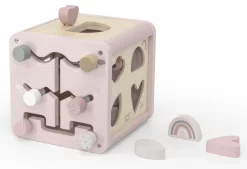 De activiteitenkubus heeft aan elke kant een andere activiteit, die naast uren speelplezier ook bijdragen aan de ontwikkeling van jouw kindje. Hij draagt bij aan het stimuleren van de hand- en oogcoördinatie, het oplossend denkvermogen van je kindje en vormherkenning. De bovenkant van de kubus kan worden losgehaald, zodat je een losse kralenspriaal hebt. Geschikt voor kindjes vanaf 12 maanden.Â
