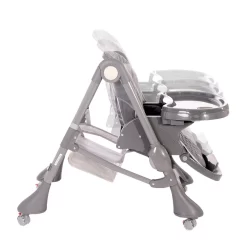 De kinderstoel kan eenvoudig in- en uitgeklapt worden, zodat deze makkelijk op te bergen of mee te nemen is. Met de wielen aan zowel de voor- als achterkant van deze kinderstoel verplaats je de stoel ook nog eens heel gemakkelijk!Â