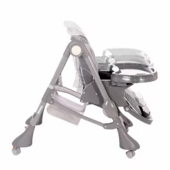 De kinderstoel kan eenvoudig in- en uitgeklapt worden, zodat deze makkelijk op te bergen of mee te nemen is. Met de wielen aan zowel de voor- als achterkant van deze kinderstoel verplaats je de stoel ook nog eens heel gemakkelijk!Â