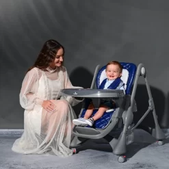 De kinderstoel is zeer comfortabel voor je kleintje, de rugleuning is in 3 posities te verstellen (van lig- tot zitstand). Ook de voetensteun is in verschillende posities verstelbaar. Doordat de hoogte in 7 posities verstelbaar is, past deze kinderstoel aan (vrijwel) iedere eettafel. Je kleintje zit zeer veilig in deze stoel vast met een 5-punts veiligheidstuigje met pads voor extra comfort.Â