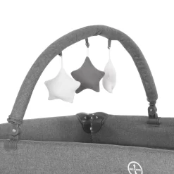 Het mesh-materiaal aan de zijkanten van het bedje zorgt voor goede luchtcirculatie, waardoor je tevens je kindje altijd goed in de gaten kunt houden. Aan een kant van het campingbed zitten twee wielen, waardoor je hem gemakkelijk kan verplaatsen. Daar bovenop heeft het Noemi Plus bedje een leuke speelboog met 3 knuffeltjes en een superhandig aankleedvlak, waardoor je jouw kleine makkelijk en snel kunt verschonen!
