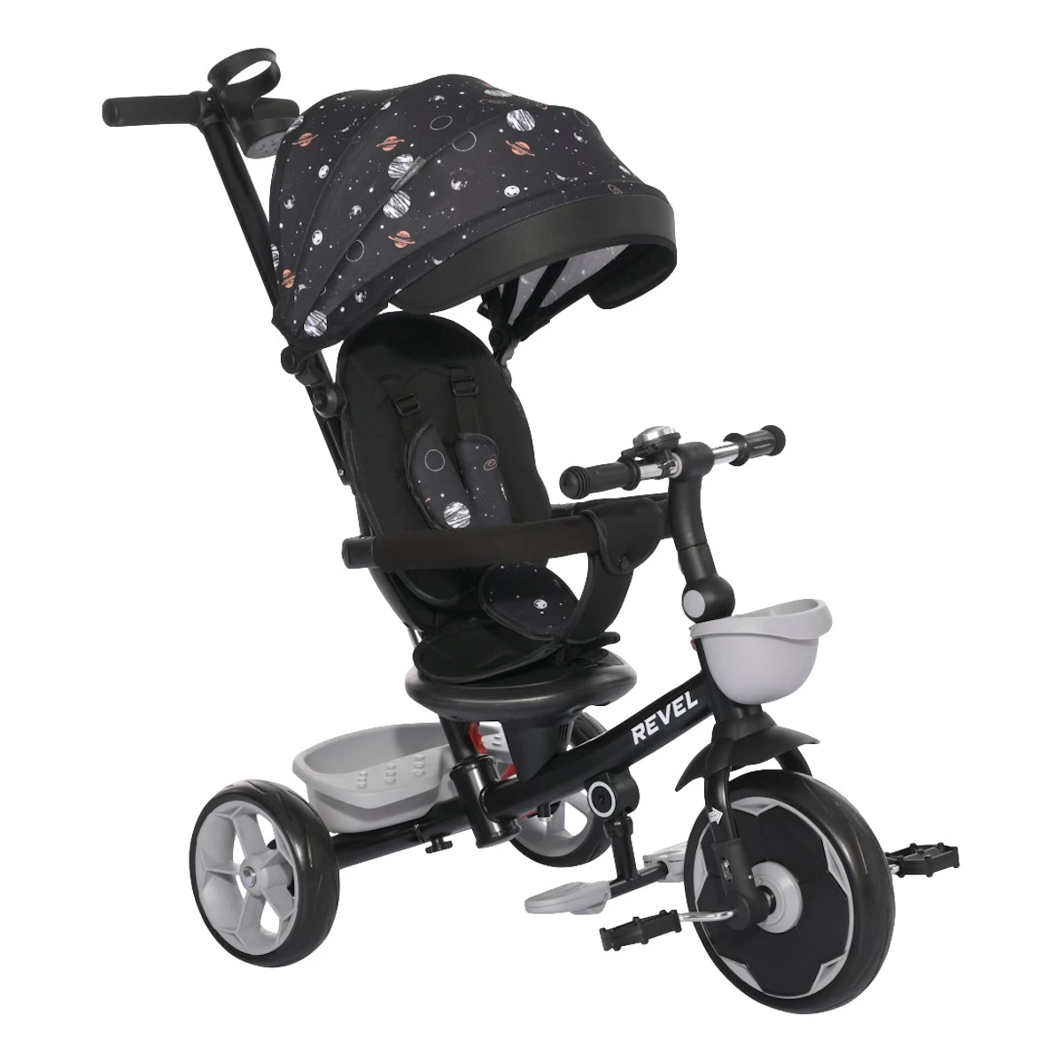Tring tring… met deze mooie Revel driewieler van Lorelli kan je kindje de sterren van de hemel fietsen! De opvallende driewieler is perfect voor kindjes die (nog) niet zelfstandig kunnen fietsen! Wanneer je kindje nog te jong is om zelf te fietsen, kan je je kleine vastmaken met het 3-punts veiligheidsgordeltje en kun je de beschermbeugel bevestigen aan de driewieler.