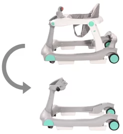 Je kindje kan comfortabel zitten in het zitje van de loopstoel. Dankzij de verschillende knopjes waar muziek en licht uit komt, zal je baby zich geen moment vervelen. Tevens is de Rider voorzien van twee zijspiegels, zo lijkt het net een auto! Zodra je kindje wat groter is geworden en echt toe is aan de eerste stapjes, bouw je hem gemakkelijk om tot loopwagentje.