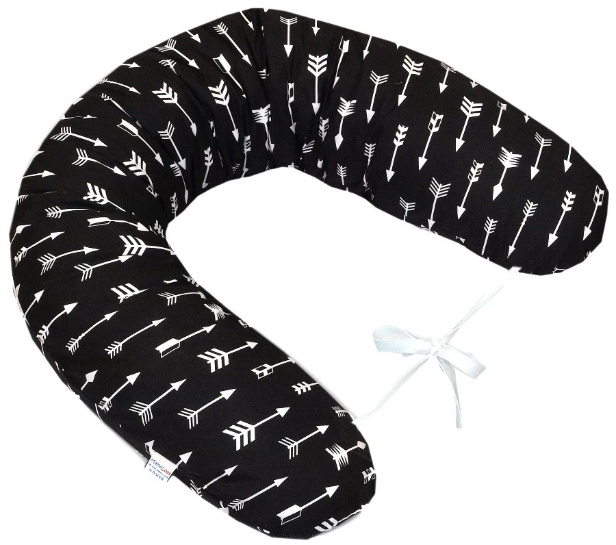 Het voedingskussen is voorzien van een afritsbare hoes die in de wasmachine op 40° gewassen kan worden. Om er voor te zorgen dat het voedingskussen rond blijft staan als je kleintje er op zit of tijdens het voeden, zitten er 2 touwtjes aan het einde van het voedingskussen welke aan elkaar geknoopt kunnen worden. De lengte van het voedingskussen is 155 cm.