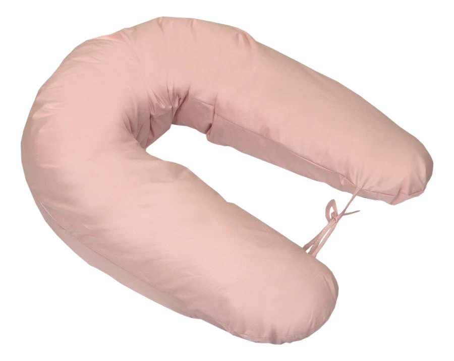 Het voedingskussen is voorzien van een afritsbare hoes die in de wasmachine op 40° gewassen kan worden. Om er voor te zorgen dat het voedingskussen rond blijft staan als je kleintje er op zit of tijdens het voeden, zitten er 2 touwtjes aan het einde van het voedingskussen die aan elkaar geknoopt kunnen worden. De lengte van het voedingskussen is 155 cm.