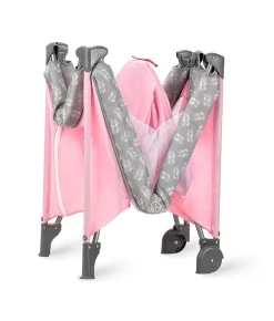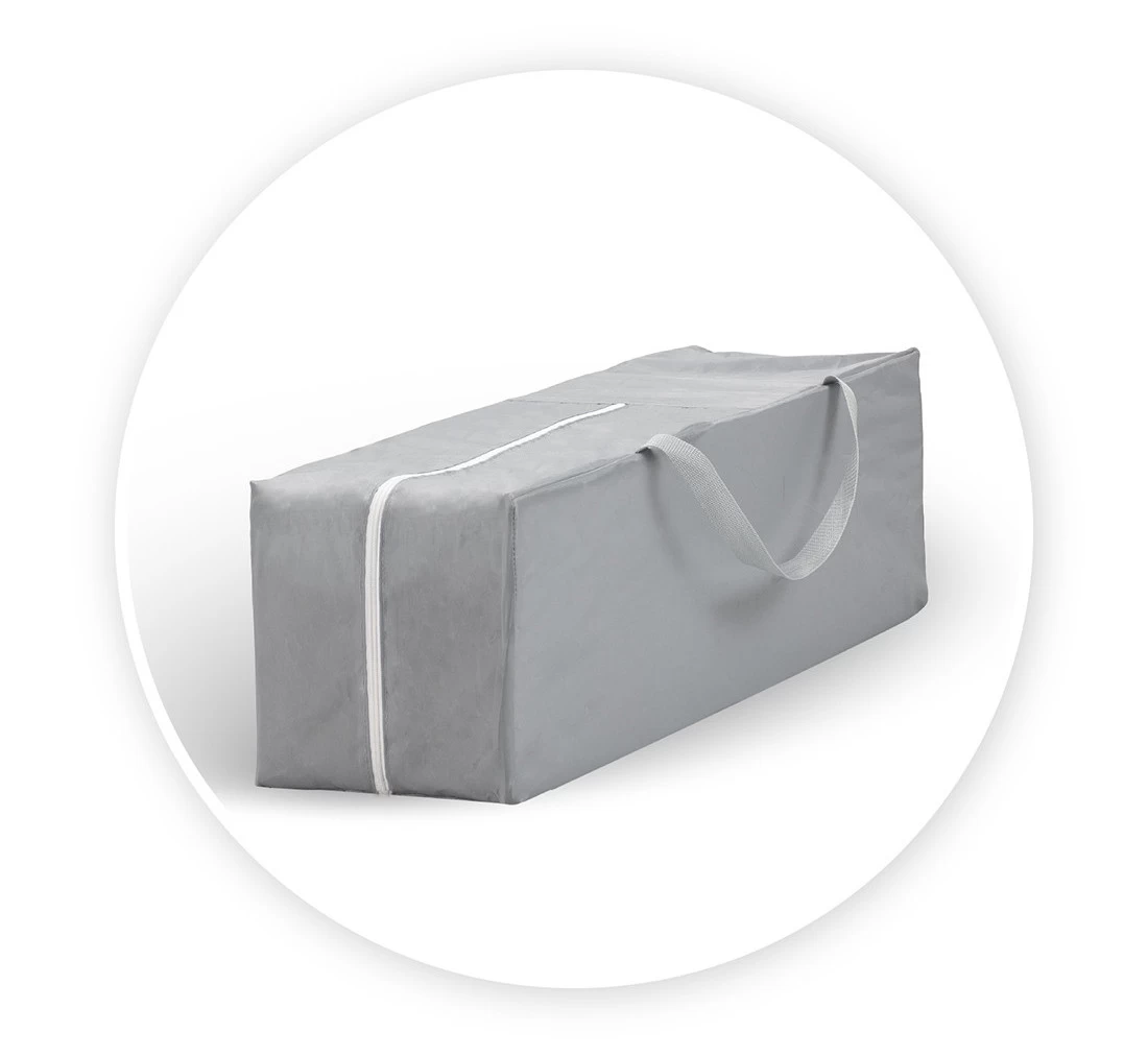 Het campingbedje is heel erg compact en eenvoudig in- en uit te klappen volgens het zogenaamde ‘paraplu principe’. Hierdoor zet je het bedje waar dan ook snel en gemakkelijk op, en kan jouw kindje heerlijk een dutje doen. Na gebruik berg je hem handig om in de meegeleverde draagtas, dat is makkelijk meenemen!Â
