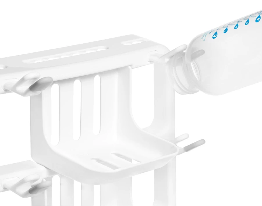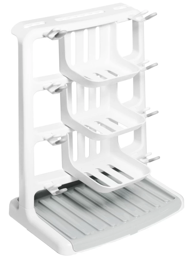 Een goed plekje vinden om alle flesjes te laten drogen is niet gemakkelijk. Met dit handige ruimtebesparende droogrek van Munchkin gebruik je zo min mogelijk aanrechtruimte en kan je alles netjes en georganiseerd laten drogen. Het droogrek is ontworpen voor flessen, spenen, afsluitschijfjes, bekers, rietjes en kleppen.Â