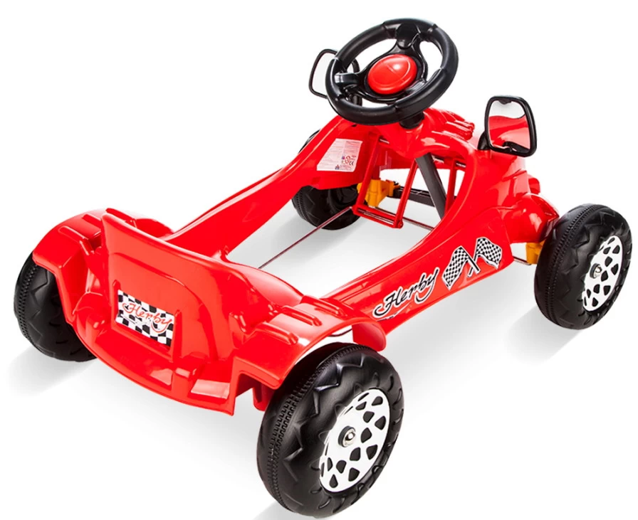 De rode Herby Trapauto is super leuk voor je kleine om mee rond te racen! Je kindje kan met deze Ttrapauto heerlijk rondrijden. Hij is ergonomsich en veilig ontworpen en heeft een leuk gezichtje op de voorkant van de auto! De trapauto stimuleert de ontwikkeling van de motoriek.Â