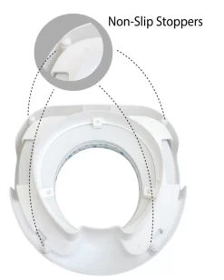 De toiletverkleiner heeft een zachte, comfortabele zitting met rugleuning en draagt bij aan een goede, veilige en verantwoorde zitpositie. De handvatten aan de zijkant zorgen voor extra veiligheid. De toiletverkleiner is eenvoudig en stabiel te plaatsen op ieder toilet en heeft antislip. De zitting is daarnaast makkelijk schoon te maken.Â