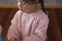 Door de drukknoopjes vast te drukken maak je eenvoudig een opvangbakje voor gemorst eten. En is de slab vies? Dan mag deze gewoon mee in de was én droger. Knoeien maar!