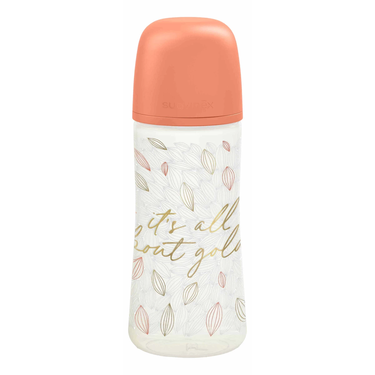 Wat een prachtige fles uit de Gold collectie van Suavinex! Het flesje is gemaakt van kunststof en heeft een fijne vorm die makkelijk is vast te houden.