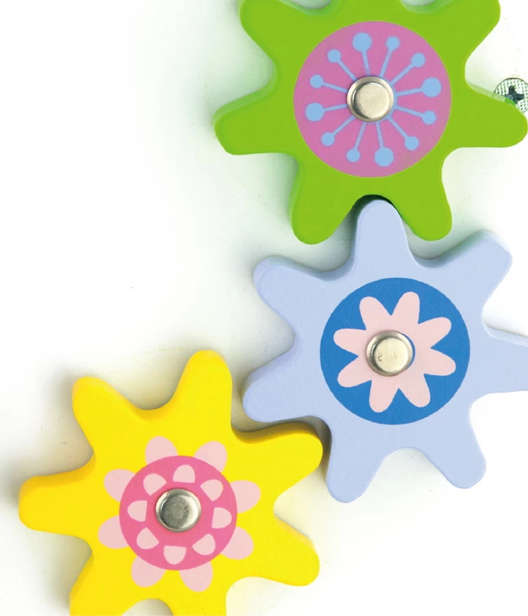 - Met klok, tandwielen, kralen en blokken